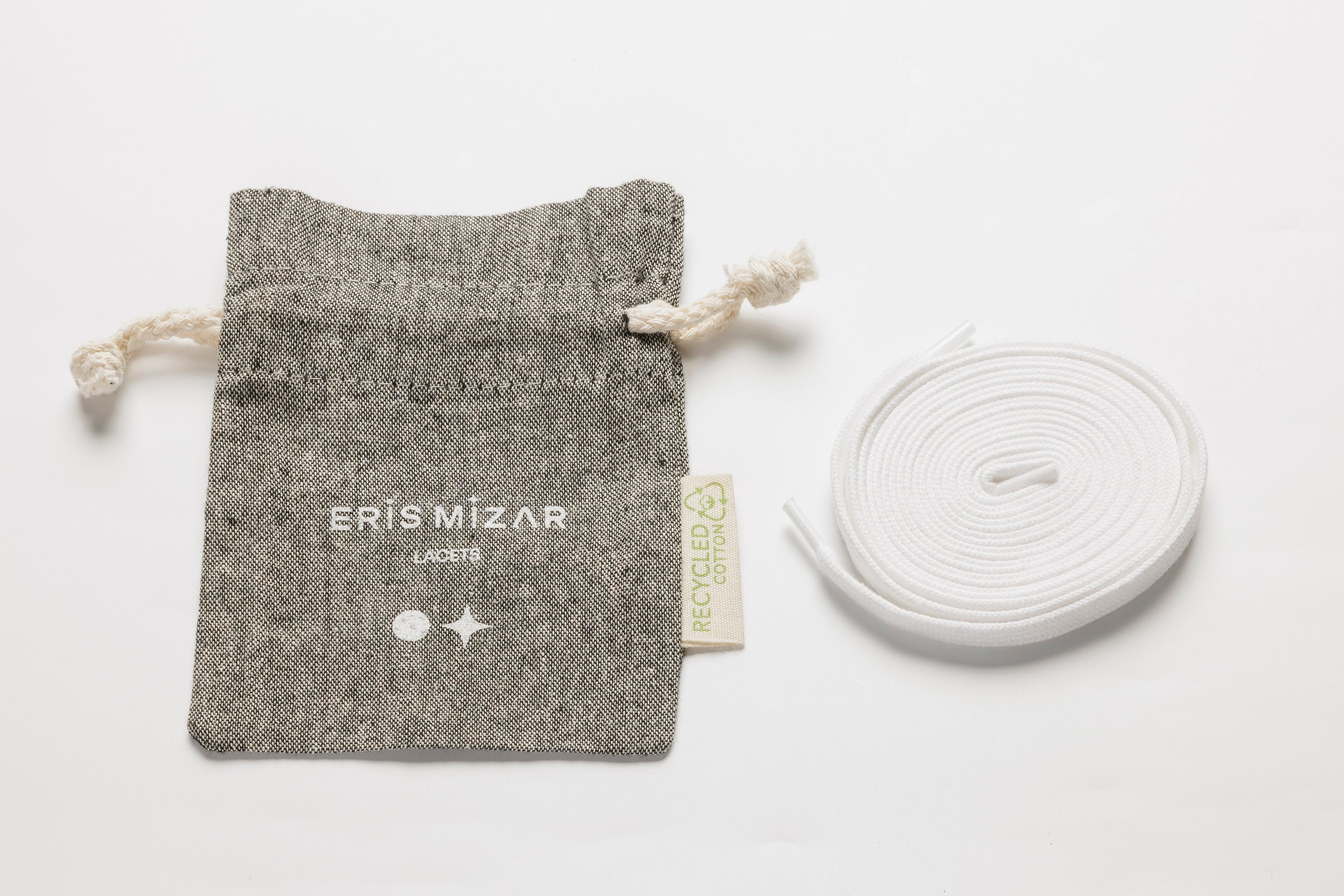 Redonnez du style à vos sneakers Eris Mizar avec nos lacets premium en coton 100 % biologique, Conçus pour offrir une excellente résistance et une finition élégante, ces lacets premium sont fabriqués au Portugal, dans un atelier spécialisé reconnu pour son savoir-faire.