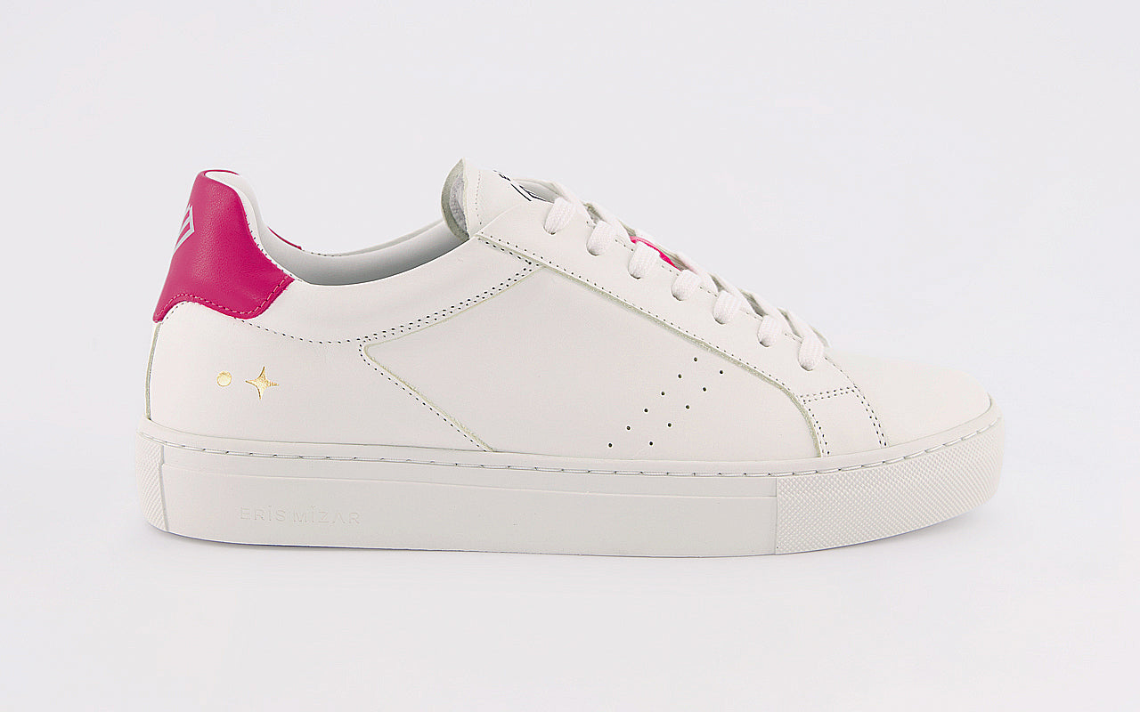 Le modèle M101 Rose Fuchsia a été pensé afin d’être minimaliste et intemporelle. Son cuir italien haut de gamme sans chrome pour la tige, sa semelle en caoutchouc recyclé, en fait une basket de grande qualité, chic et élégante. La touche de couleur apporte de la fraîcheur et de la gaieté. Le rose fuchsia rappelle la couleur des aurores boréales.