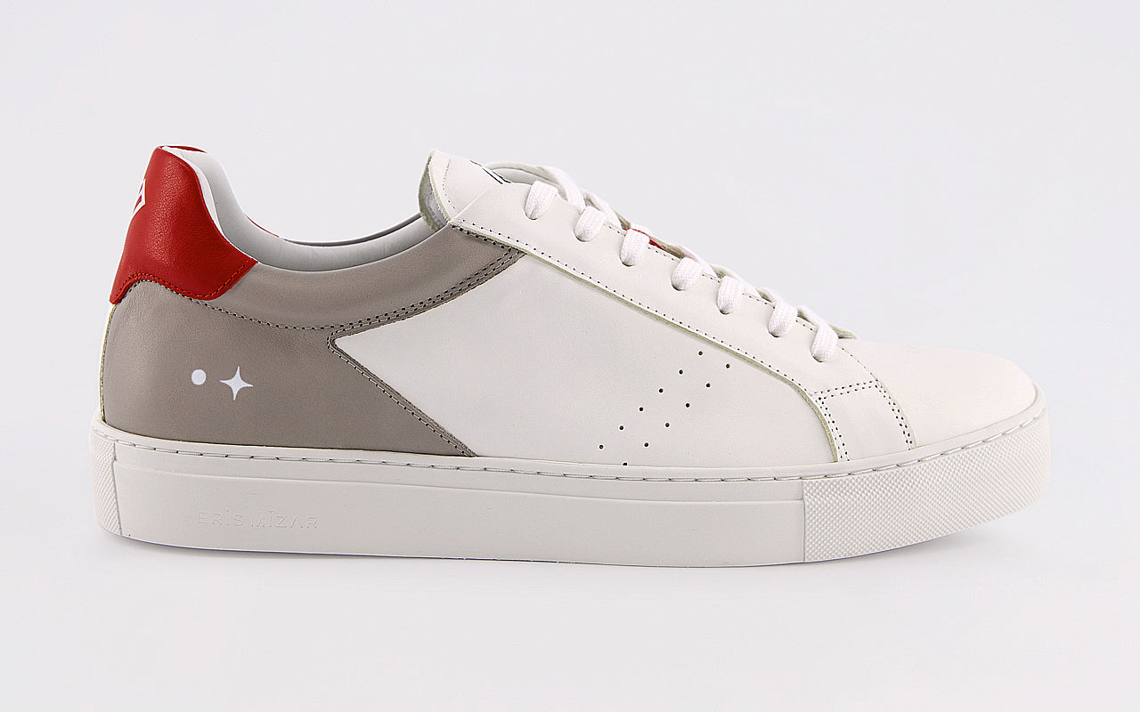Le modèle M101 Rouge & Gris a été pensé afin d’être élégant et intemporelle. Son cuir italien haut de gamme sans chrome pour la tige, sa semelle en caoutchouc recyclé, en fait une basket de grande qualité, chic et sportive. Le mixte de couleur Rouge et Gris est une inspiration de notre planète vu de l'espace et la touche de couleurs rouge est une vision des marais salants. Ce modèle apporte une touche de sophistication à un look décontracté ou plus habillé.